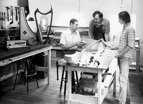 ![]() When faced with a problem in construction we would often bounce ideas off of each other in brainstorming sessions. This created a very fertile environment for the development of ideas, since we could each bring our strengths to the table. We would ask questions like, "How did historical makers solve this problem?", "What is the simplest and most elegant way to solve this problem?", "What would produce the fullest, loudest, or sweetest tone?", "What would suppress rather than enhance these qualities?" and so on. Often, we found that there was really only one answer that would fit all of these requirements, and it often fit within historical parameters. In the absence of surviving historical instruments, we would rely on our combined intuition about instrument making to arrive at one or more successful methods of construction. In this amazing environment our artistry, craftsmanship, creativity, imagination, and inventiveness quickly developed and matured. |