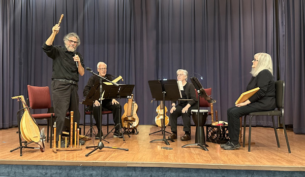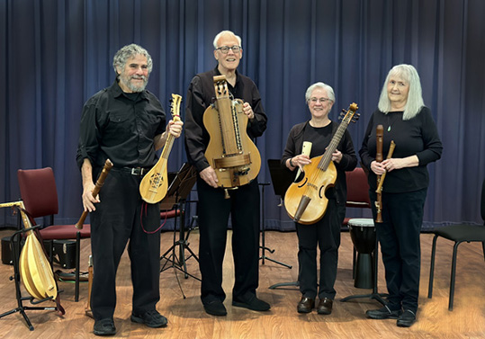 ![]() The early music group Moyen Âge (French for “Middle Ages”) presents some of the finest music of the 13th through the 15th centuries on copies of original instruments. Hear the exciting sound of early music as the folks in the Middle Ages heard it on Hurdy Gurdy, Lute, Gittern, Psaltery, Gemshorn, Vielle, Cornamuse, Renaissance recorders, and drums. The instruments are briefly explained during the performance and afterward the audience is invited to inspect the instruments up close. Listeners have described the music as “enchanting”, “fresh and educational”, “magical”, and “uplifting”. The instruments alone grip the attention of the audience with their wistful and fascinating tone qualities.